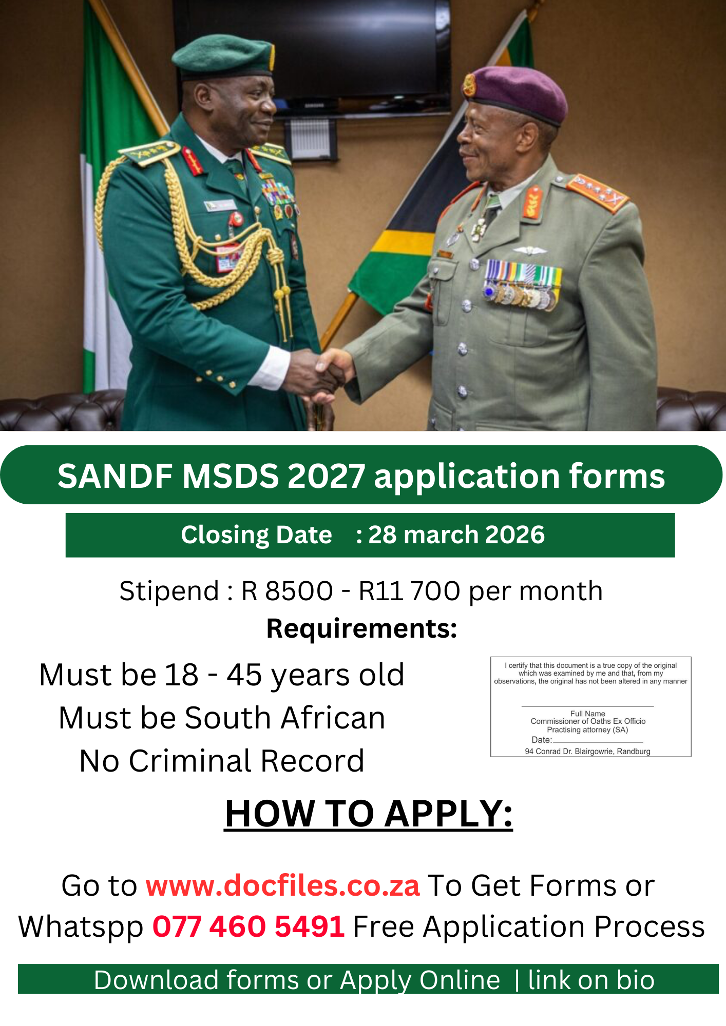 π SANDF MSDS 2027 application forms The South African National Defence Force (SANDF) uses the MSDS (Military Skills Development System) to recruit