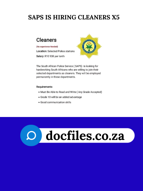 SAPS IS HIRING CLEANERS X5