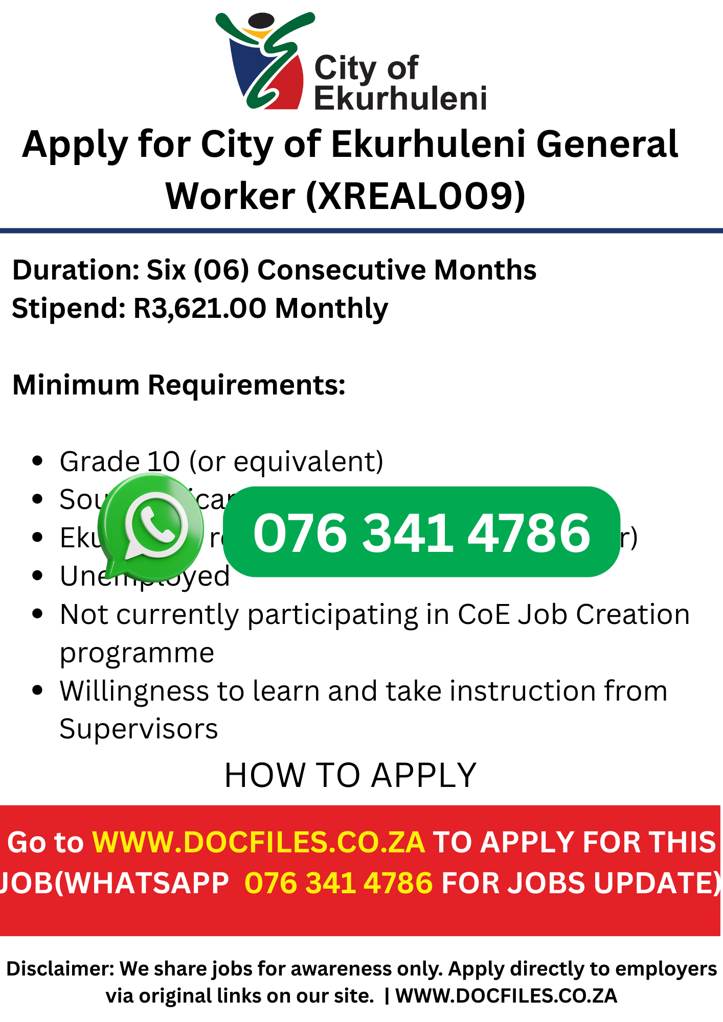 Apply for the City of Tshwane General Worker (Water & Sanitation) job in Centurion. Closing 26 Aug 2025. No formal qualifications required. Closing Date: 28 August 2025 Location: Centurion, Gauteng Reference Code: SDTM1209-4-2025 (E) Department: Regional Operations and Coordination –