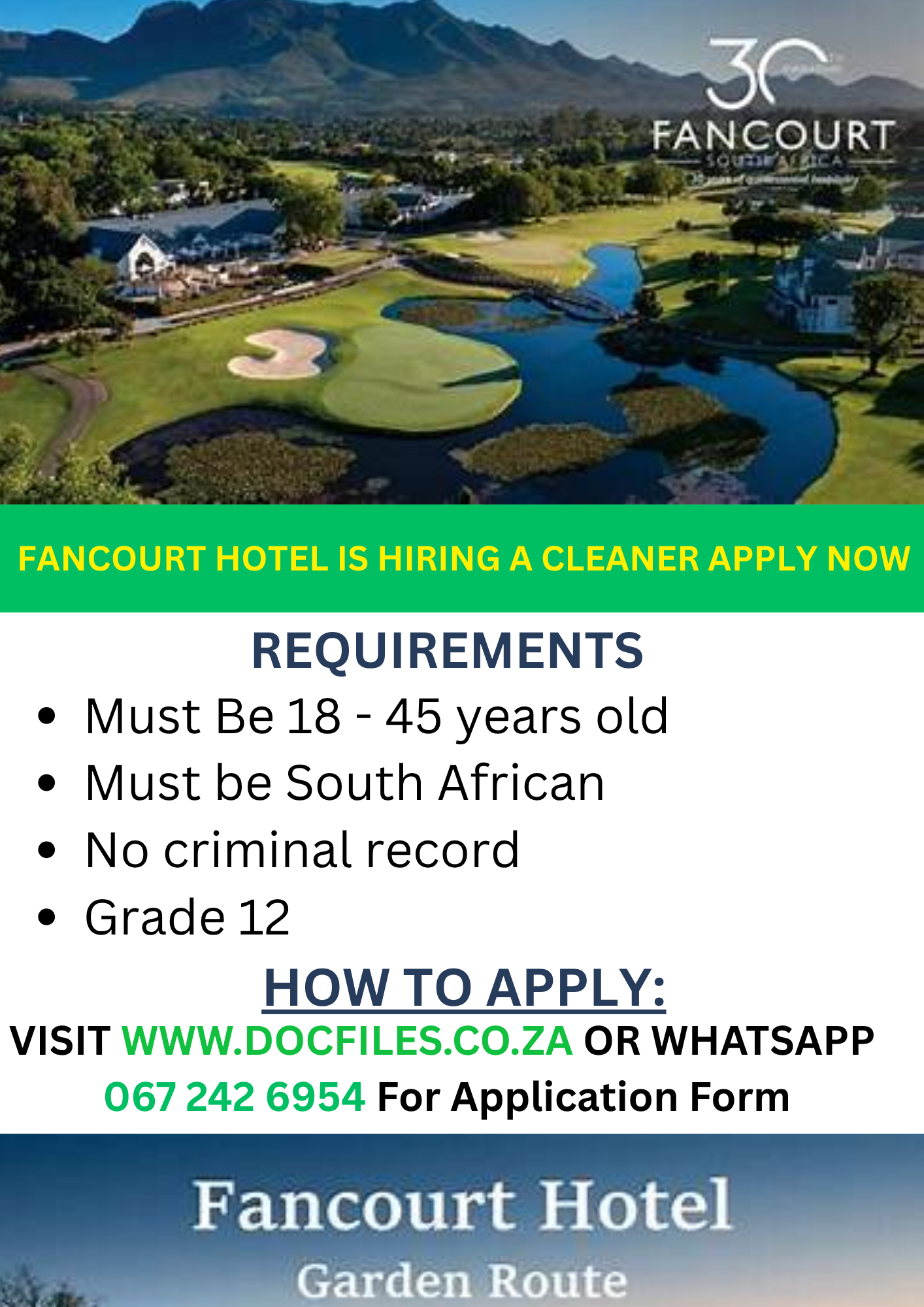FANCOURT HOTEL IS HIRING A CLEANER APPLY NOW